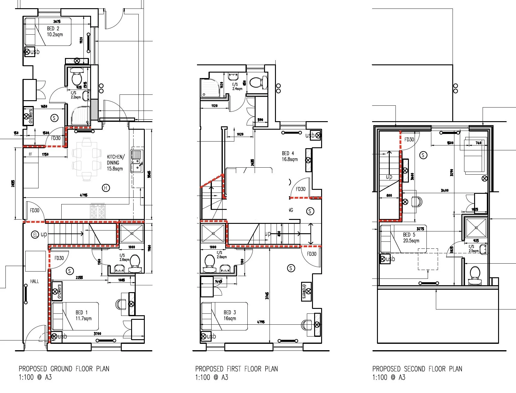 As you can see on the plans, we decided to flip the stairs 180 degrees on the ground floor in order to allow more space for the kitchen as this is the only communal space in the house, we wanted to ensure that the space is practical and homely for the future tenants.